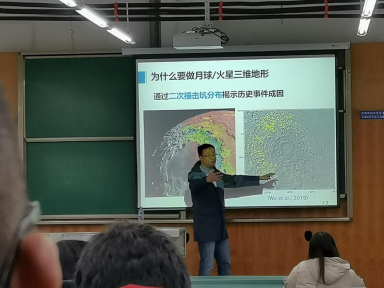 随后胡翰教授还向同学们展示了自己研究领域的科研前景和科研成果:“为什么要做月球/火星三维地形”,“国际态势:World DEM地面系统”,“全球地理信息资源建设与维护更新”等。
