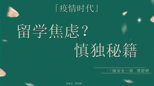 安全工程类专业大四在读优秀学姐贾舒婷主讲,主题为“解决‘后疫情时代’的留学焦虑—慎独秘籍分享”。