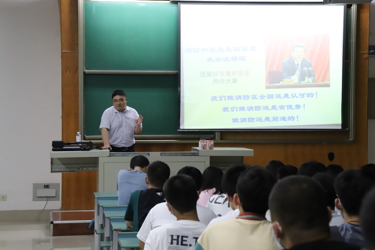 及专业溯源、课程学习及考核、专业分流办法等进行介绍。他表示,进入大学就要学会自我约束,掌握适合自己的学习方法,尽快适应大学生活并享受大学生活。他强调,大学文化生活丰富多彩,但始终明确核心第一位是学习,并进一步结合日常生活阐述了消防安全对口工作,引导同学们充分认识这一新兴专业。