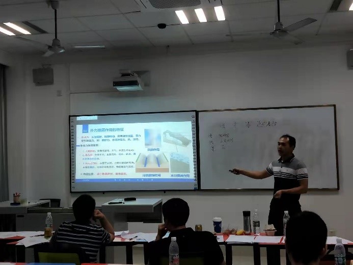 凌斯祥老师主讲《普通地质学》,他讲解了外动力地质作用这一章节,首先介绍了外动力地质的概念、外动力能源的来源,之后讲解了外动力地质作用的类型,分别为:风化作用、剥蚀作用、搬运作用、沉积作用、固结成岩作用。课程结束后,评委老师评价到该次课程作为大一新生课程,对衔接高中与大学中地学知识尤其重要,选择讲解的深度尤其值得讨论,对讲课过程中的一些问题也进行了指导。