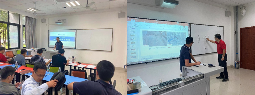 王虎老师主讲《构造地质学》,他重点讲解了节理方面的知识点,评委老师评价该讲课过程较为自信,还可以借鉴国内外精品课程和相关教材进一步精美化课件、优化板书细节等,最后程谦恭教授示范了构造知识点的讲解细节。