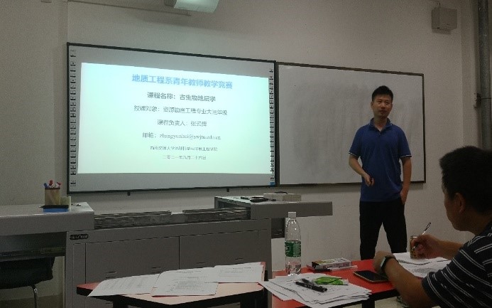 张云辉老师主讲《古生物地层学》,他对节肢动物门三叶虫纲进行了讲解,综合板书、PPT、古生物化石标本和视频播放等方式,详细讲解了三叶虫的身体结构、生活方式和生活时代等,评委老师评价到张云辉老师运用了多种方式生动形象的阐明了三叶虫的主要知识点,讲课富有激情,讲解深入浅出,具有较好的课堂效果。