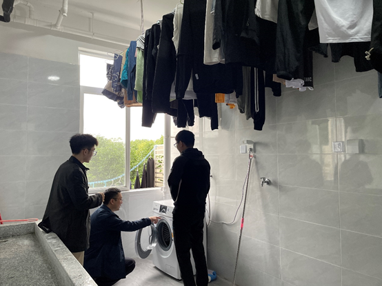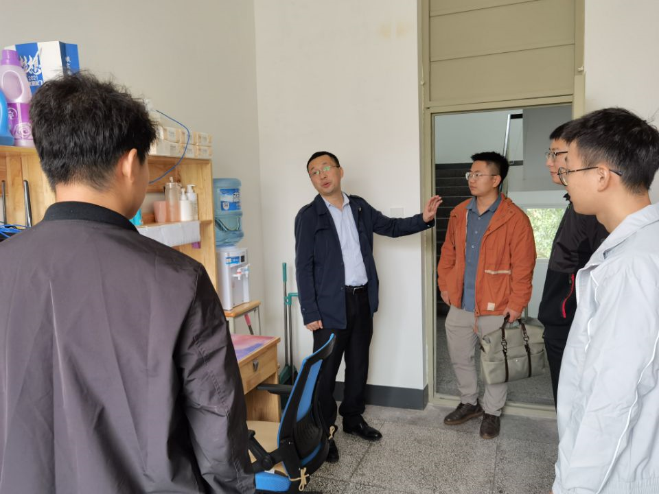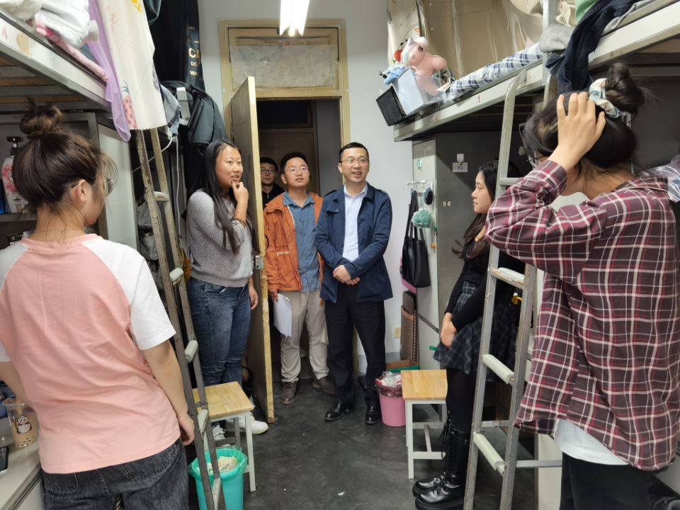 党委副书记傅尤刚带领研究生辅导员崔宇龙、文强、刘礼钊等老师前往九里校区走访2021级研究生新生宿舍。