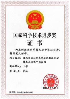 2021年11月3日,2020年度国家科学技术奖励大会在人民大会堂举行,以我校为第二完成单位、胡翰教授为第三完成人的“自然资源卫星光学遥感测绘关键技术及立体中国应用”获国家科学技术进步二等奖。