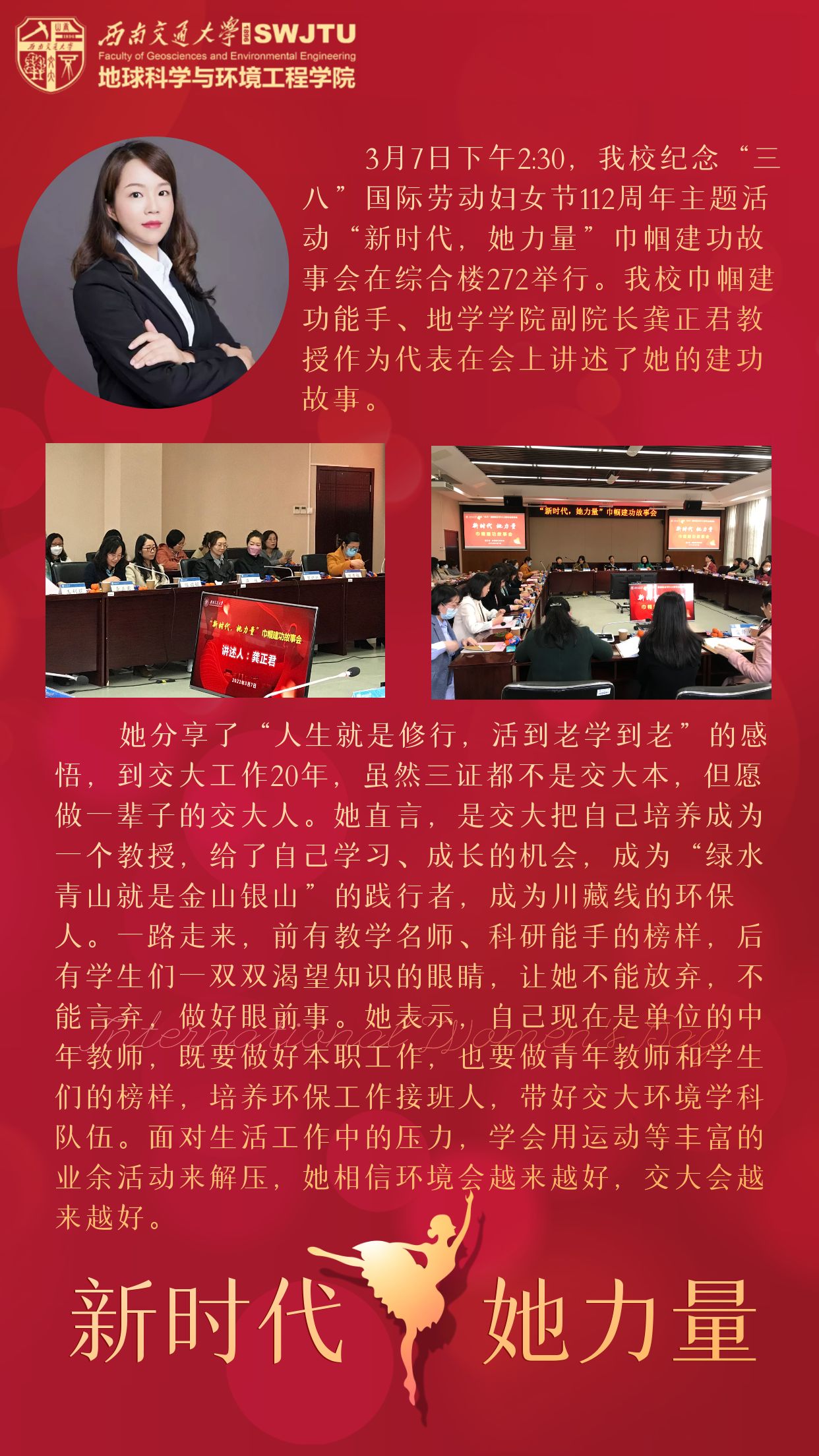 我校巾帼建功能手、污污漫画 副院长龚正君教授在纪念“三八”国际劳动妇女节112周年主题活动“新时代,她力量”巾帼建功故事会上作分享交流