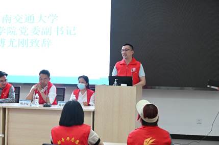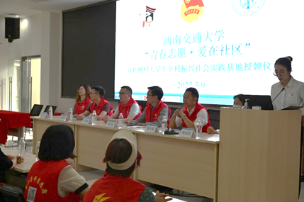 校团委副书记朱炜在发言中指出社会实践是青年学生练就过硬本领的“大熔炉”,学校鼓励交大学子深入基层社区开展形式多样的各类社会实践活动,让学生将所学知识运用于实践,做到知行合一,在学思践悟中强化责任担当。青杠树村为交大学子提供了广阔的实践平台,希望同学们发挥专业优势,积极探索,勇于实践,为乡村振兴奉献出自己的青春力量。
