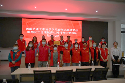 团委书记杨都强、地学青协指导老师罗然等一行前往成都市郫都区青杠树村大学生乡村振兴社会实践基地开展志愿服务,并在青杠树村村委会举行授牌仪式。青杠树村团支部书记姚少双、博益社工组织负责人陈雨琼等出席授牌仪式。青杠树村团员、青年突击队队员,西南交大地学青协学生代表一同参加本次活动。