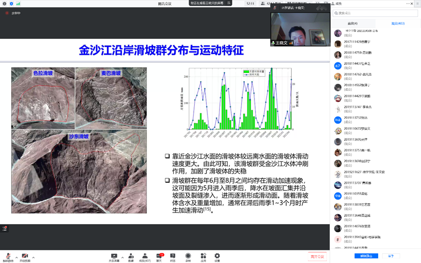 紧接着在第三、第四部分中,王晓文又以金沙江沿岸以及藏东南冰川两处作为实际案例,依托工程实际情况向学生展示了InSAR技术的实际工作流程以及得到的成果,充分展示了我国科研学者在面对难题时积极探索解决方法,持续开拓创新的能力。