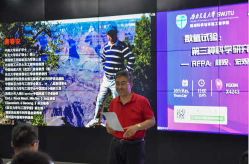 地球科学与环境工程学院程谦恭教授邀请973计划首席科学家、大连理工大学教授、深地工程研究中心主任、中国岩石力学与工程学会副理事长唐春安教授赴我校作《数值试验:第三种科学研究方法》专题报告。程谦恭教授致欢迎词,并介绍了唐春安教授的主要科研成就。