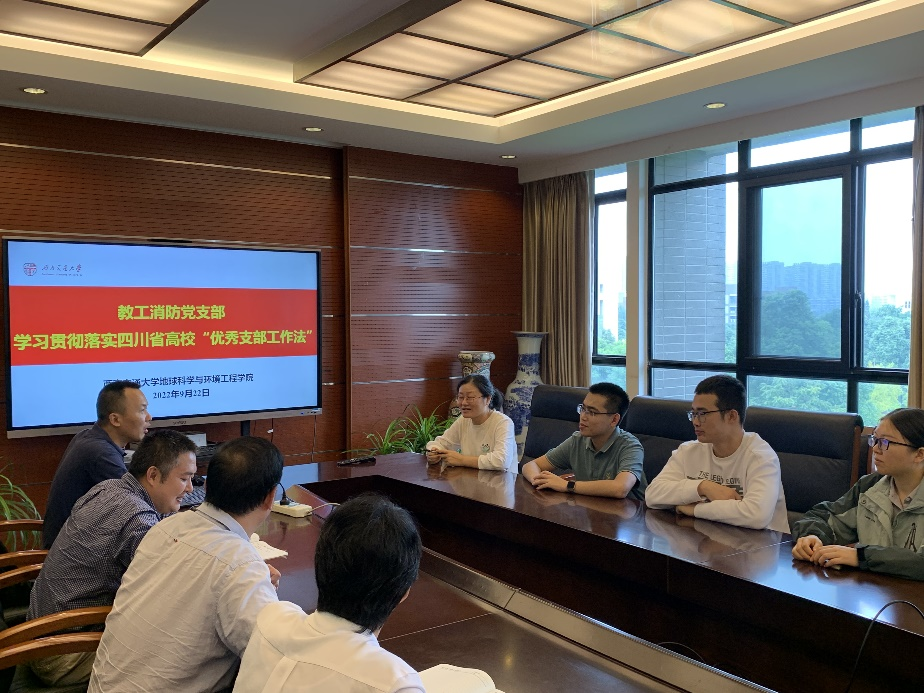 教工消防党支部于9月22日下午在X4531举行了四川省高校“优秀支部工作法”专题学习活动,会议由教工消防党支部书记李涛同志主持。