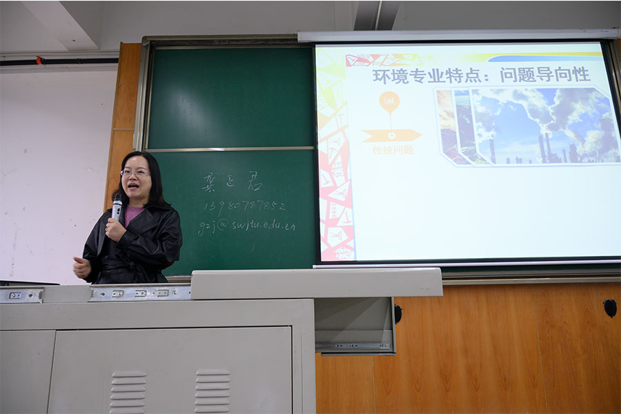 会议伊始,龚正君就环境工程专业的专业认知、学科发展趋势以及就业前景进行分析,她首先向同学们介绍了环境专业的特点,强调将个人兴趣与专业学习结合,鼓励同学们自我思考、与老师进行课内外交流。而后,她为同学们介绍了环境专业的就业前景,指出环境专业学习的重要意义,不仅是国家战略发展需要,更是专业人才需求。她建议同学们要扎实自身能力,提升竞争力,不惧道路曲折,鼓励同学们与老师交流合作,关注专业相关前沿。