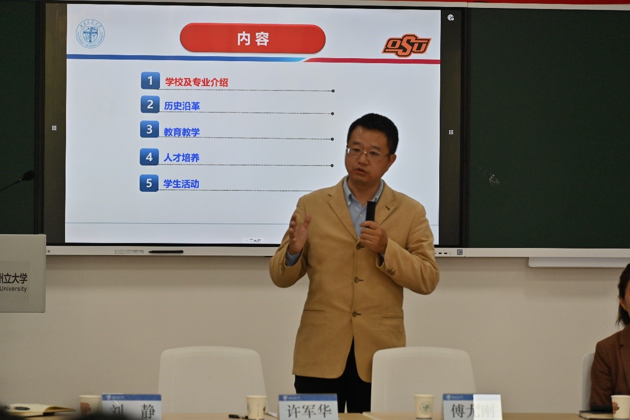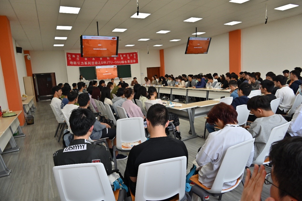 与美国俄克拉荷马州立大学合作举办的本科教育项目的全体新生参加恳谈会。恳谈会由关方主持。
