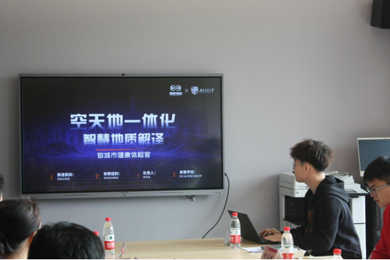 空天地一体化智慧地质解译项目团队负责人李京伦进行汇报展示。他通过短片介绍了项目情况、应用、成绩等方面情况,展开讲解了团队多尺度空天地一体化的三项内容,并对学校、学院对项目发展做出的努力表示感谢。之后,李京伦从项目核心技术与专利、主营业务及优势、示范应用与影响、团队组成、荣誉成绩、教育维度等方面对团队目前情况进行介绍。