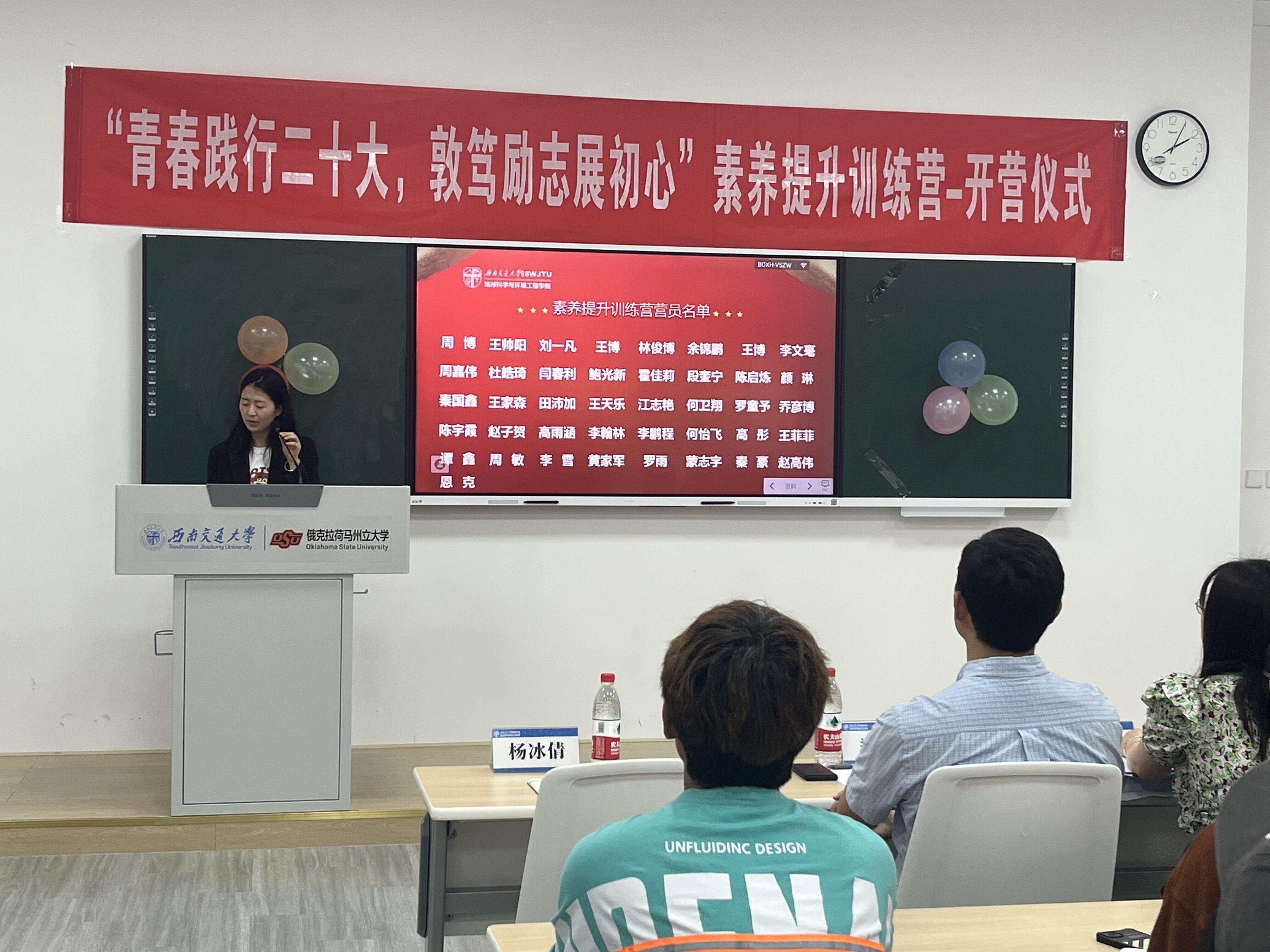 杨冰倩宣读素养提升训练营营员名单,并鼓励参营同学认真积极得参与到训练营的每一个环节中,从中学习,有所收获。