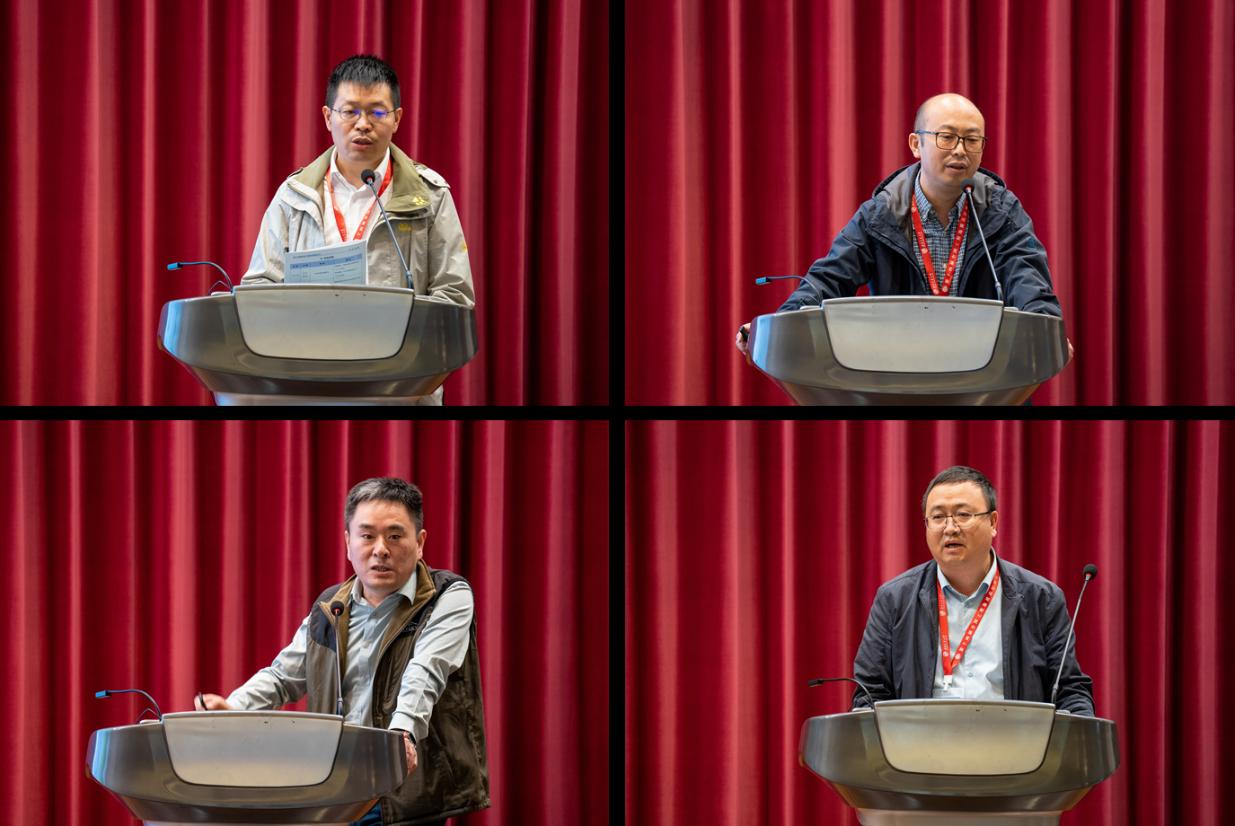 大会报告(报告人:上排左起,陈晓清、徐正宣;下排左起,吴中海、杜世回)