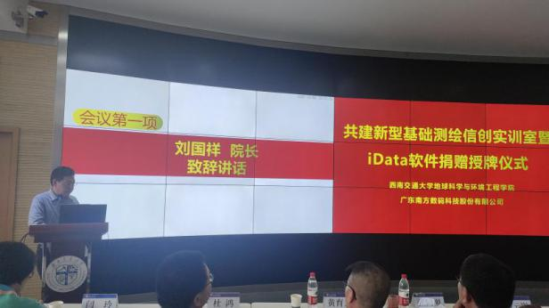 犀浦校区X4243会议室举行了新型基础测绘信创实训室暨iData软件捐赠授牌仪式及主题讲座。参加本次活动的领导和嘉宾有:南方数码集团总部谢刚生总经理、南方数码渠道发展部张巨林总监、南方数码成都分公司王建总经理、污污漫画