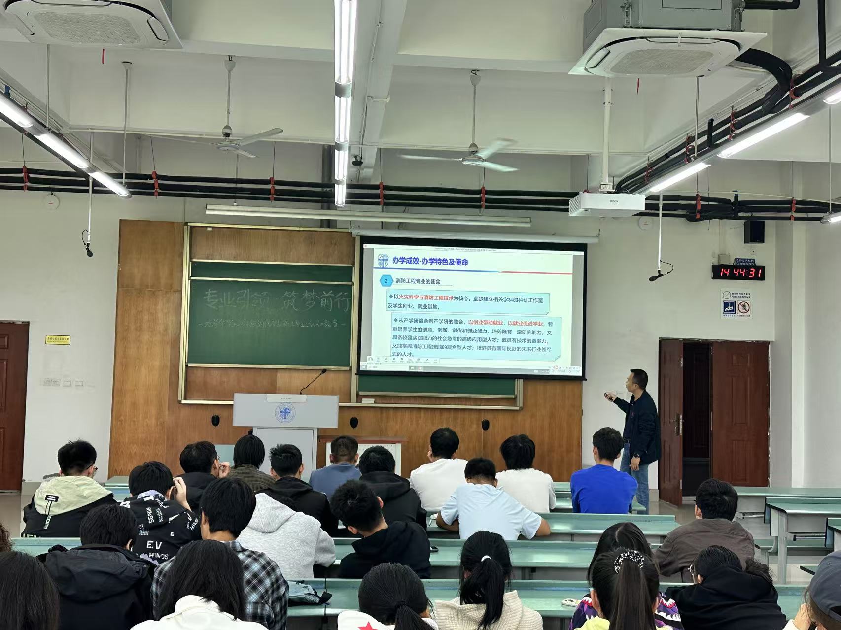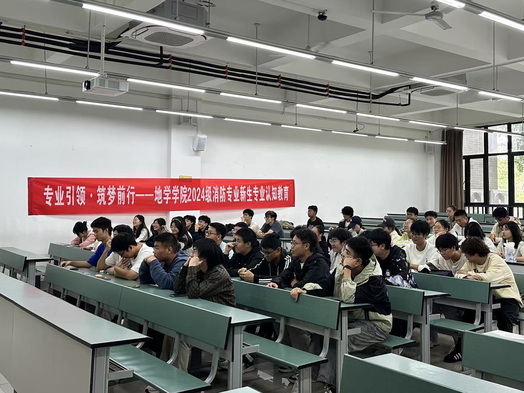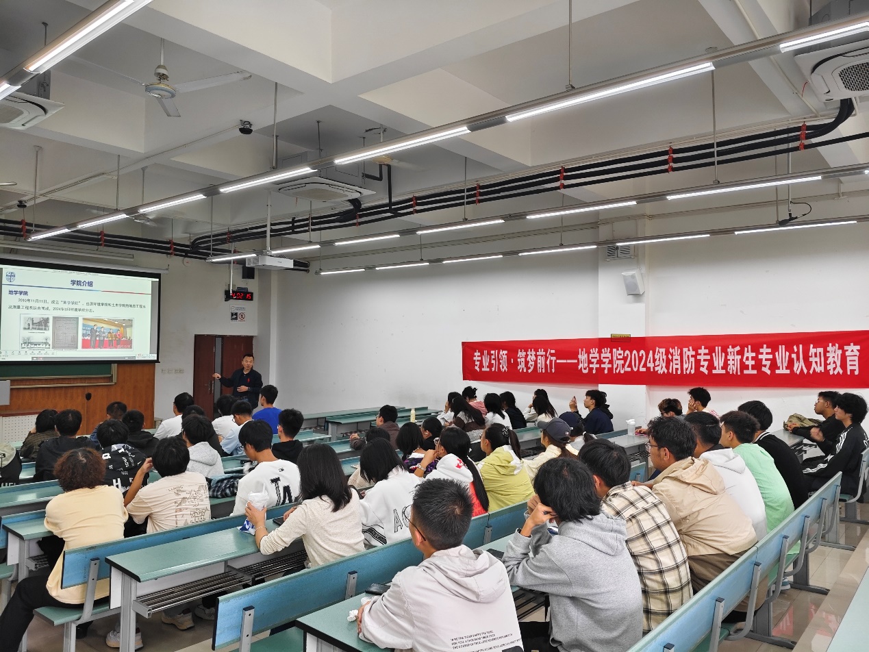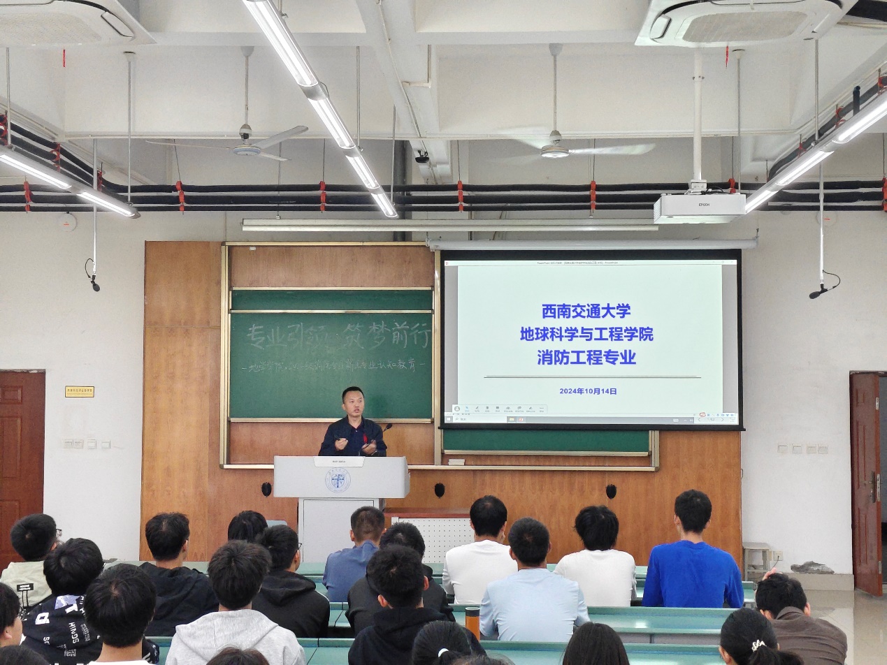 2024级本科辅导员姜茜主持,消防工程教师李涛主讲,2024级全体消防工程专业新生参加活动。