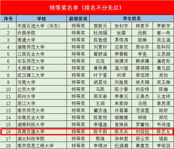 代表队表现优异,由陈午阳、陈艺戈、陈天乐、刘佳钰组成的团队斩获特等奖,指导教师朱军、谢亚坤荣获“优秀指导教师奖”,这也是我院首次获得该赛事特等奖。