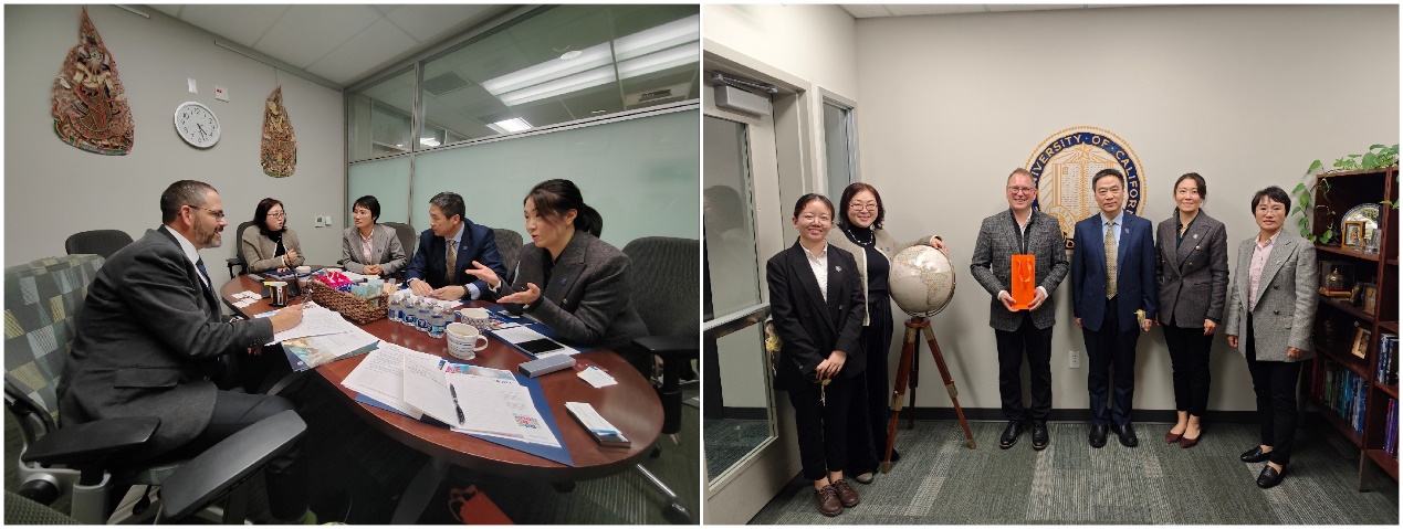 代表团一行首先抵达加州大学戴维斯分校,分别与该校全球事务学术项目和国际合作处副教务长Michael Lazzara,继续教育学院副院长Eva Anneli Adams及项目主管Jacob Hosier就两校国际化办学基本情况做详细介绍,并对未来师资派遣、课程共建、学生短期交换项目、海外深造进行深入探讨,充分挖掘国际合作潜能。