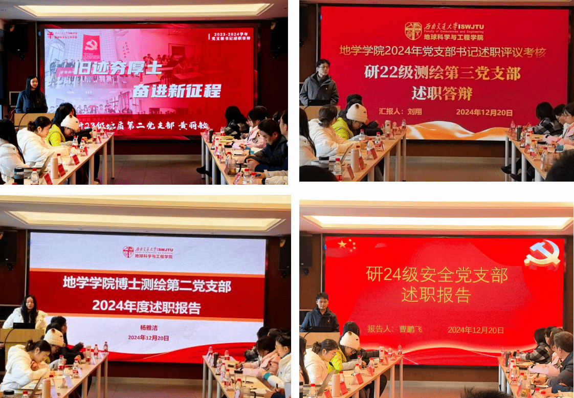 会议伊始,各教工党支部书记围绕2024年的党支部工作进行了述职汇报。围绕党纪学习教育和党的二十届三中全会精神的学习,重点就提升党员思想政治素质、增强师生凝聚力、推动改革发展、促进师生共同发展的实际成效。与此同时,各位教工书记还结合学院工作,汇报了党支部在落实各项工作任务、党建融合专业学科以及助力学院事业发展的具体举措和取得的显著成果。