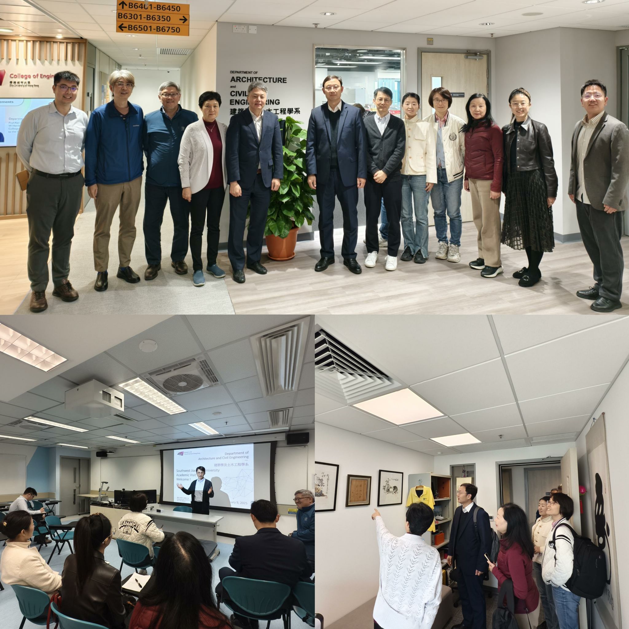 1月9日上午,代表团在香港城市大学同建筑学及土木工程学系系主任戴建国教授、副主任(行政)赖志强教授及卢伟真教授、李伟明教授、王剑锋教授、陈伯源助理教授座谈交流。赖志强教授介绍了建筑学及土木工程学系的基本情况,双方重点围绕专业设置、组织架构、人才培养、日常管理等方面进行交流讨论。交流结束后,卢伟真教授、李伟明教授带领代表团走进学系办公室、教师工作间等场所进行参观交流,深度了解和感受香港城市大学的办公环境及育人理念。