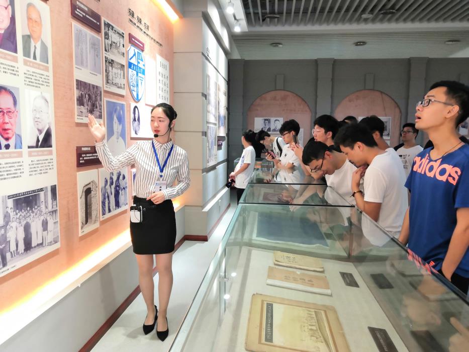 在孙惠敏老师的带领下,全体成员陆续进入校史馆。步入校史馆映入眼帘的是一辆具有轨道交通特色的绿色火车头,在校史馆讲解员郭梦岩同学的讲述下,交大的历史华章向我们逐步展现。