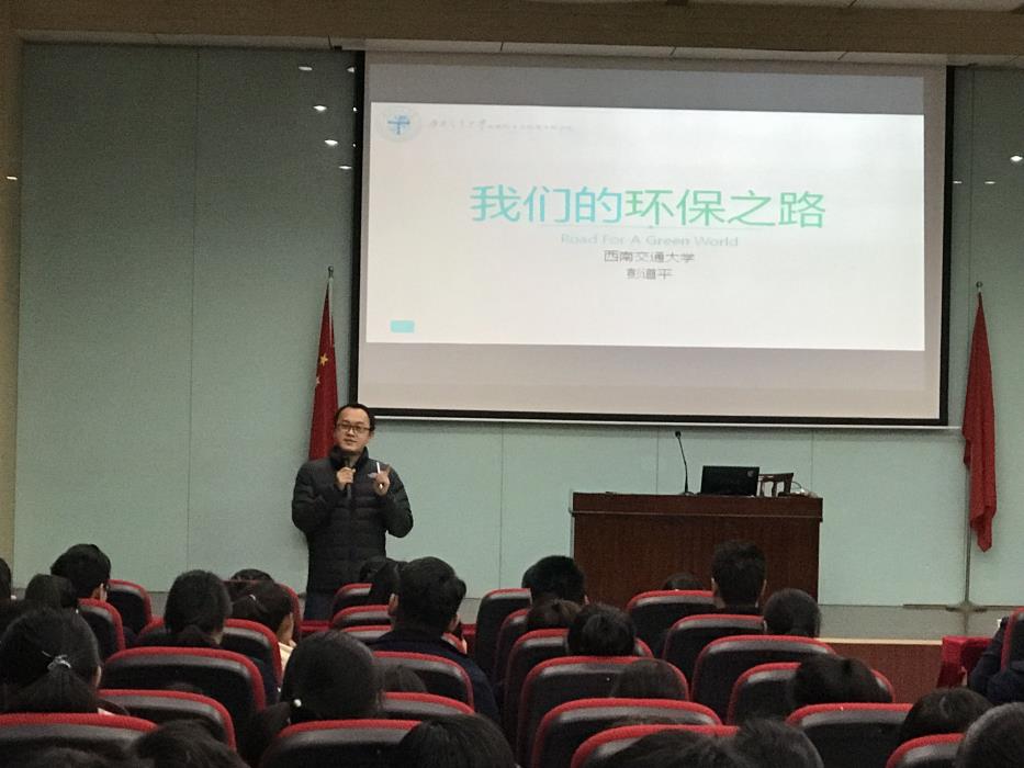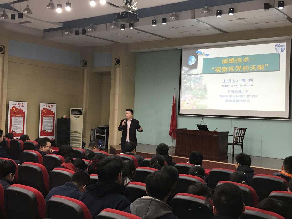 接着,赵锐、彭道平、慎利分别将我们的环保之路、遥感技术用深入浅出的方式讲授,赢得现场掌声阵阵。赵锐从离我们生活比较近的雾霾开始讲起,环保之路的筑成,绿海蓝天的维护任重而道远。彭道平从李之仪的诗词“我住长江头,君住长江尾。日日思君不见君,共饮长江水。”出发,结合成都与武汉的关系,讲述了水环境对于人们生活与生产的重要性,激发了在场学生的兴趣。慎利先提问同学们对遥感技术的认识,展开自己的讲座,当前无论是国家发展,还是城市的规划建设等等,都离不开遥感技术。