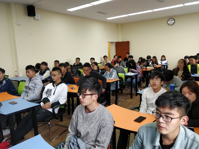 此次交流会旨在给学生们传授出国的生活和学习的经验,提升将来他们在国外的生存适应能力。在交流会之前,刘国祥院长为同学们介绍了此次交流的主讲人——英国UCL大学优秀硕士毕业生、中铁二院年轻的注册测绘师刘竹均工程师。