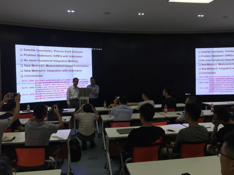 tracking”的报告,首先介绍了近100年来用动力法和数值积分法计算全球标准重力场模型存在的数学基础缺陷;然后,从反例、逻辑证明和数学推导三个方面说明了之前所用方法的不足之处,即将运动微分方程的初值设为零是不完备的;最后,徐培亮介绍了根据自己的研究从全球标准重力场模型定义入手,利用卫星轨道扰动理论,求解Volterra积分方程获得高精度和高分辨率卫星重力场模型的理论和方法。