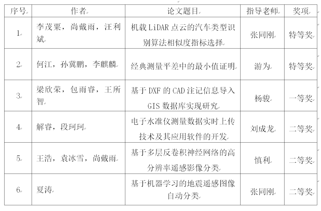 通过组织参加全国测绘科技论文竞赛活动,加深了我校测绘学科与全国兄弟院校之间的沟通与交流,鼓励学生热爱测绘事业、热爱测绘科技创新,激发广大学生勤奋钻研、挑战自我的进取精神,为学生未来从事科研、撰写论文打下了一定的基础。