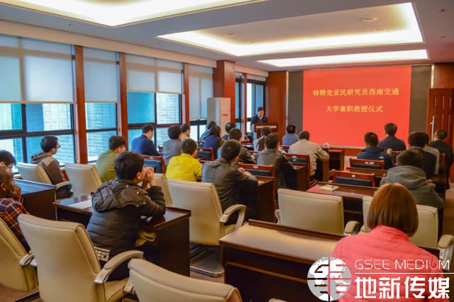 受聘仪式结束后,由党亚民作学术报告。党亚民谈到四川不仅有位于地震带的地理优势,而且作为旅游胜地,四川导航产业的发展具有相当重要意义。因此,四川是测量研究的理想场所。