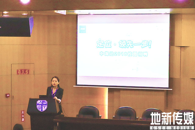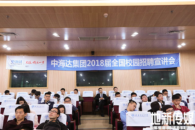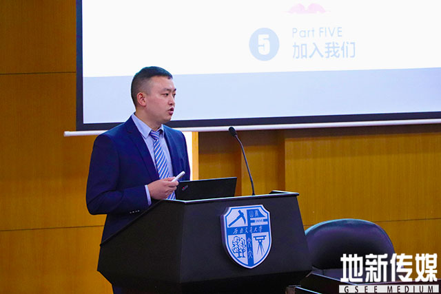 接着,肖登宝从我们的行业、我们是谁、情怀与理想、成长看得见及加入我们等五个方面为在场同学介绍中海达2018届招聘宣讲会的主要内容。