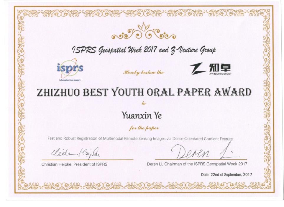 图2 ISPRS GSW 2017最佳青年论文奖