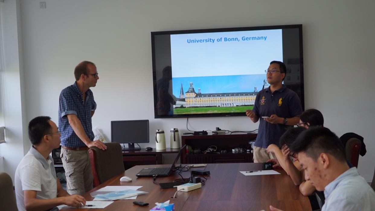测绘遥感信息系主任袁林果教授首先代表我系致欢迎辞,随后Kusche教授用长达近2个半小时的时间、4个完整的PowerPoint介绍了波恩大学、物理大地测量学基础、卫星重力和卫星测高研究进展以及《Journal of Geodesy》。