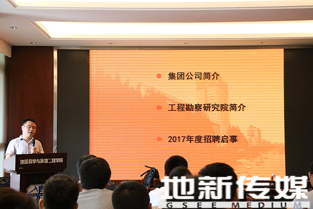 李部长接下来向在座同学介绍中铁四院工程勘探研究院。研究院为铁四院二级生产单位,是国家大型综合性勘探单位,是一个以市场为导向,推行规范化,科学化,集约化管理的单位,现有职工518人。之后李部长对研究院的工作种类及范围进行了详细的介绍。