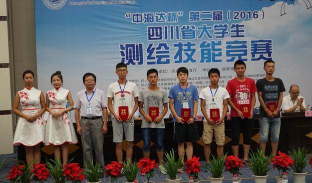 2016年7月15日~17日,“中海达杯”四川省第二届(2016)大学生测绘技能竞赛在成都理工大学举行。比赛旨在检验省内高校测绘学科实践教学的效果,并为全省各高校搭建学习和交流的平台,达到“以赛促建、以赛促教、以赛促改”的目的。该项赛事对鼓励大学生努力实践、积极实践,锻炼学生的团队协作意识、耐心和不怕苦、不怕累的优秀品质,养成认真细致的良好业务作风起到了良好的推动作用。来自省内23所高校的15支专业队伍、39支非专业队伍,共268名队员参加了比赛,比赛项目包括水准测量、导线测量、数字化测图、三维激光点云建模和数据入库五个项目。来自省内外测绘单位的35位专家、教授组成裁判组,保证了大赛公平公正和顺利开展。