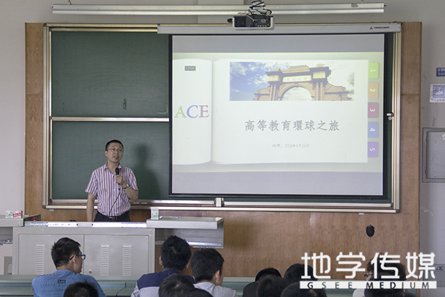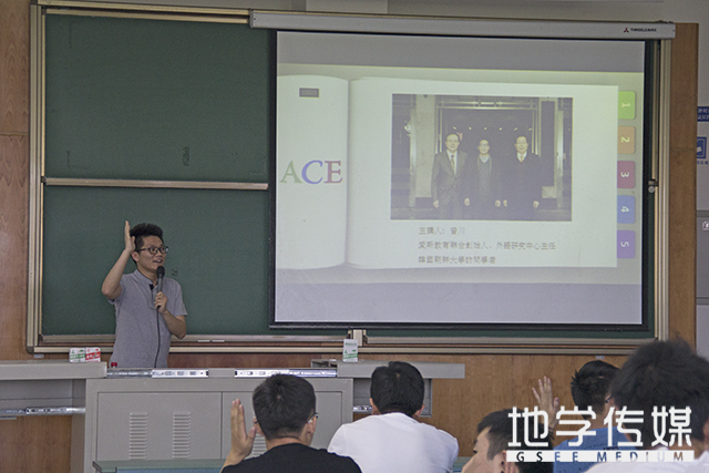 会中,副书记傅尤刚首先强化了学校发展的三大战略——“人才强校,国际化,素质化”,强调教育面向国际化的重要性,阐述了此次交流会的重要意义。随后,曾川老师向大家详细介绍了“美国常青藤大学联盟”、“英国G5超级精英大学”、“澳洲八大名校”、“韩国SKY 大学”等其它优秀名校的历史概况和发展现状等,让师生充分感受到了全球化背景下的多元大学文化。同时,他还以切身经历与学生们进行了有效的互动,并精心准备了小礼物,同学们参与热情高涨,现场氛围十分活跃。