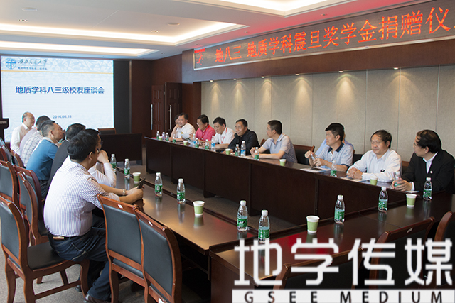 捐赠仪式结束后,数位校友与校方领导就如何改善新一代地质学科精英教育方式展开了座谈交流。期间,加强本科教育、完善基础教育、培养学科兴趣等问题被广泛讨论。此次捐赠仪式不仅强化了校友与校方的沟通,也使与会的地质科学硕士新生获得了鼓励与督促。