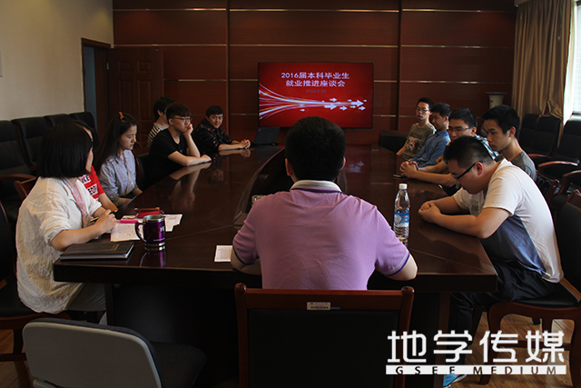 举行了2016届本科毕业生就业推进座谈会。此次会议分为两场,并由傅尤刚书记主持。第一场参加的学生主要来自地质专业,第二场参加的学生来自环境和消防专业。会议的主要目的是与2016届地院的本科毕业生中未就业的学生进行交流,了解他们在就业方面的打算和困难,并给予他们最大的支持与帮助。