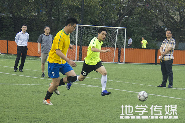 党委副书记傅尤刚亲临赛场,为我院足球健将助威。经过历时近一小时的鏖战,在场上队员的默契配合下,最终地学足球队不负众望,以3:0的绝对优势完胜对手,成功挺进决赛。本场比赛的三粒进球,分别由17号汪鹏贡献2球和21号何毅贡献1球,为比赛奠定胜局。