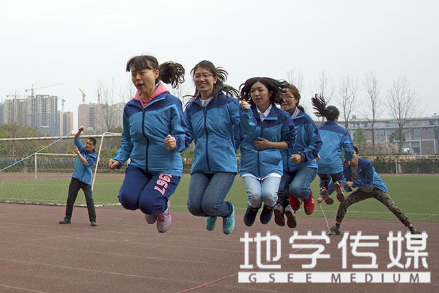 比赛分为5组,每支队伍由两名男选手摇绳,六名女选手跳绳,以六人同时跳绳的最高次数计入成绩。地环学院派出由蔡红波与王绍笳老师带领的两支队伍参赛,由钟萍,杨都强等共16名老师参加了比赛。在裁判的开始命令发出后,伴着整齐的号子,我院教职工代表跳跃在长绳之间。最终我院以两队平均29分的成绩斩获第七的好成绩。