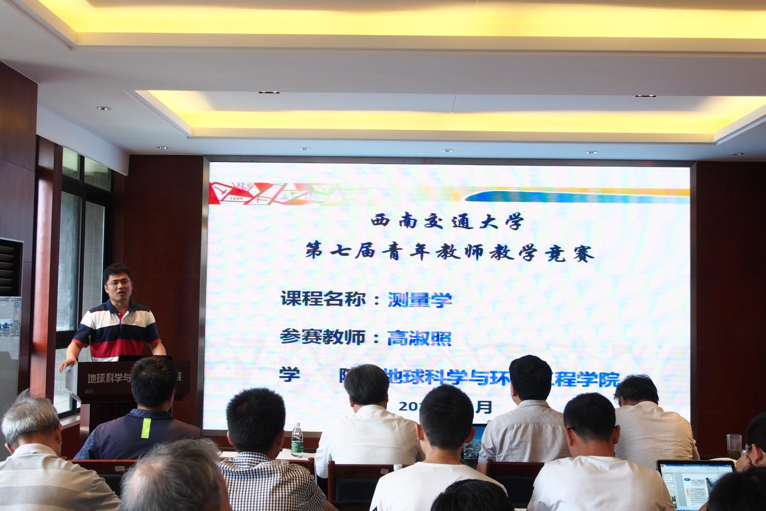 上午9:30分,范东明教授宣布比赛开始。每位老师讲授20分钟,评委提问交流10分钟。他们教学内容设计巧妙,讲授过程条理清晰,教学方法灵活适用,教学手段丰富多样。张同刚老师以《工程测量》中的水准测量原理为切入点,对水准测量的点位标志、测量原理、路线布设和计算检核等进行了深入浅出的讲解。高山老师讲授了《测量平差基础》的绪论章节,通过如何学好测量平差,测量平差的任务、意义、地位和作用等让大家对测量平差有了一个基本的认识,然后再讲解了误差的来源、规律以及精度评定的指标等内容,使大家更容易接受学习内容。高淑照老师通过与同学互动交流的方式开场,并利用视频演示现实生活中定位的例子,引出了《工程测量》这门课的学习,然后从讲述了课程的性质,学习的教材,实习实验等内容,让同学对《工程测量》有了一个基本的框架。龚晓颖老师讲授了《大地测量学基础》这门课中的时间系统一节,讲授了恒星时,世界时等定义,将枯燥的概念生动的表述出来。每位老师讲课完毕,教学经验丰富的老教师们从讲课思路、课件制作、语言表达等方面向青年教师提出了合理的建议和意见。