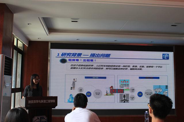 接下来,2012级地图制图学与地理信息工程专业研究生,刘贝玲,从四个方面:1、研究背景(包括提出问题、分析问题和研究目的);2、租房平台的设计和开发;3、结果展示;4、结论和展望,介绍了论文《基于天地图的移动租房软件设计与实现》。针对租房难、出租难的问题,她紧扣租房平台需求性,创新出租房软件“猎房宝”,并展示了它的强大功能,同时提出了该平台在功能发展和市场运作方面存在的问题。生动形象的ppt和专业知识完美融合,让同学们深刻感受到网络信息平台在现实生活中的重要作用。互动环节,大家积极提问,针对想法的产生、数据信息收集、地理位置匹配等问题展开了交流。