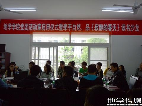 “经典悦读”系列活动中。学生自管主席雷华雄介绍了开展读书交流试讲会,《地学学风》征文比赛,读书沙龙,趣品书,送书上门与经典同眠,经典阅读读书队建设等活动。之后,叶秋辰开始《寂静的春天》阅读分享交流,当前环境问题越演越烈,而蕾切尔卡森女士在上个世纪就有高瞻远瞩,留下这本用宁静生活反称环境恶化的书籍。同学们围绕环境问题这个主题,结合当前雾霾问题,水十条,新环保法,各抒己见地进行系列讨论。讨论期间,傅尤刚与何杨的“插一句”又使沙龙活动妙趣横生,增添亮点。最后同学们得出结论,保护环境要从自身做起,提高自己的行为规范,不然如何与他人宣传,见到污染的行为,依据自己的知识进行有用的宣传。而污染环境的老道路是万不可走的。希望重回一个美好的世界,一个我们抬头就是蓝天的世界。