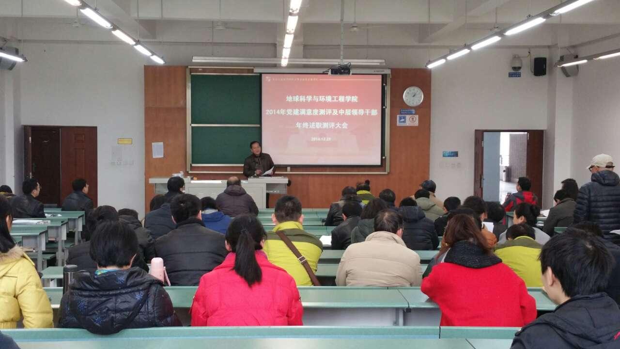 “2014年党建满意度测评及中层领导干部年终述职测评大会”在X4154隆重召开。我院全体领导和教师出席了大会。学院大会由我院党委书记徐瑞堂主持。