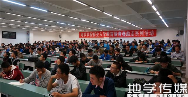 10月17号晚19:00,在X4359教室,资深校史研究专家梁锦唐教授对全体地学新生进行校史教育。