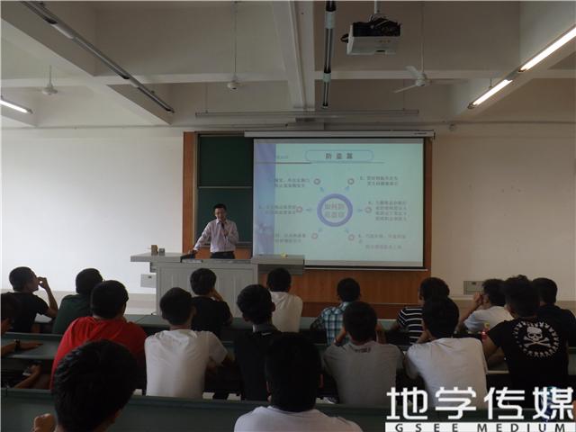 整场讲座内容主要分为防范意识和学习生活两部分。其中,防范意识又细分为防盗、防骗、防火、防震、防人身伤害等几个部分,每个部分都展示精确可靠的数据分析和生动详细的案例,以及大家在日常生活应该怎样预防等。小到出门一定要锁门,同学之间的情绪小矛盾的处理,大到外人入室行窃,南门外的交通安全,几乎是涉及到生活中的每个细节。讲到防骗的应对时,傅老师甚至讲出了自己当年大二的一次受骗事件,从中分析出值得吸取的经验和教训,希望能以自己的实例更好地告诫大家。贴近生活而又特别值得注意的防范意识傅老师都跟大家讲解得十分到位。