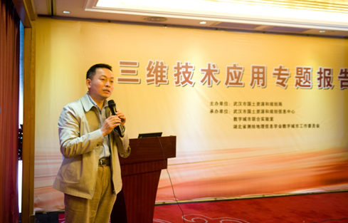 朱庆教授作为数字城市联合实验室副主任、湖北省测绘学会数字城市工作委员会副主任应邀参加了会议,并做了“三维地理信息系统平台软件与示范应用”主题报告。