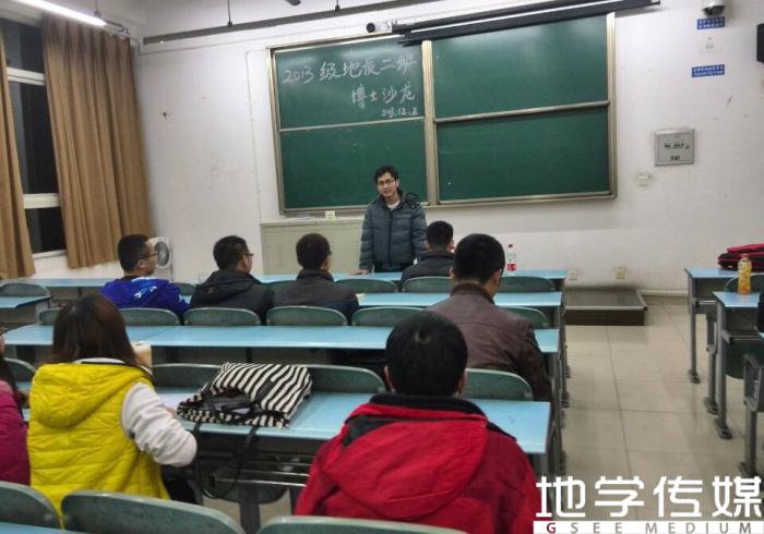 2013年12月2日晚上7:00,研究生地质二班在X2225教室举行了以“品论文、写论文”为专题的博士沙龙活动。由于同学们刚刚踏入研究生学习生活的状态,对论文的发表有一定的困惑,本次活动特邀2008级博士研究生廖昕师兄和2011级博士研究生冯君师兄为大家答疑解惑。