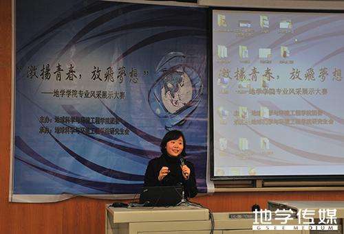 接下来,来自地质工程系的小组代表对地质工程和物探进行了生动的讲解。以陈锣增同学为代表的地质一组,他们用简短的地质灾害视频阐述了地质工程专业的专业范畴以及重要性。同时,从四个方面简单的论述了学科的整体方向,结合自己学习专业知识的经验体会,强调了专业知识的重要性,分析了研究生与本科生的就业状况。接下来,以高斌银为代表的物探一组,主要为大家阐述了地球物探的概况,并重点介绍了电流勘探、探地雷达、地震勘察等三种常用的物探方法。她解释,这三种物探方法的都是以测量地质体的物性差异作为基本工作原理,应用地质勘察的各个领域,提高了勘查工作效率和可实施性。